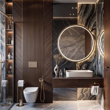 Stylish washroom crafted for relaxation, featuring premium materials and thoughtful design