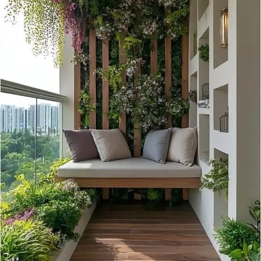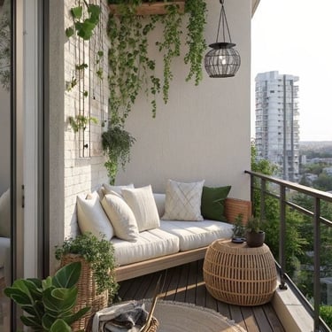 Biophilic balcony blending greenery, natural light, and open space for a peaceful retreat